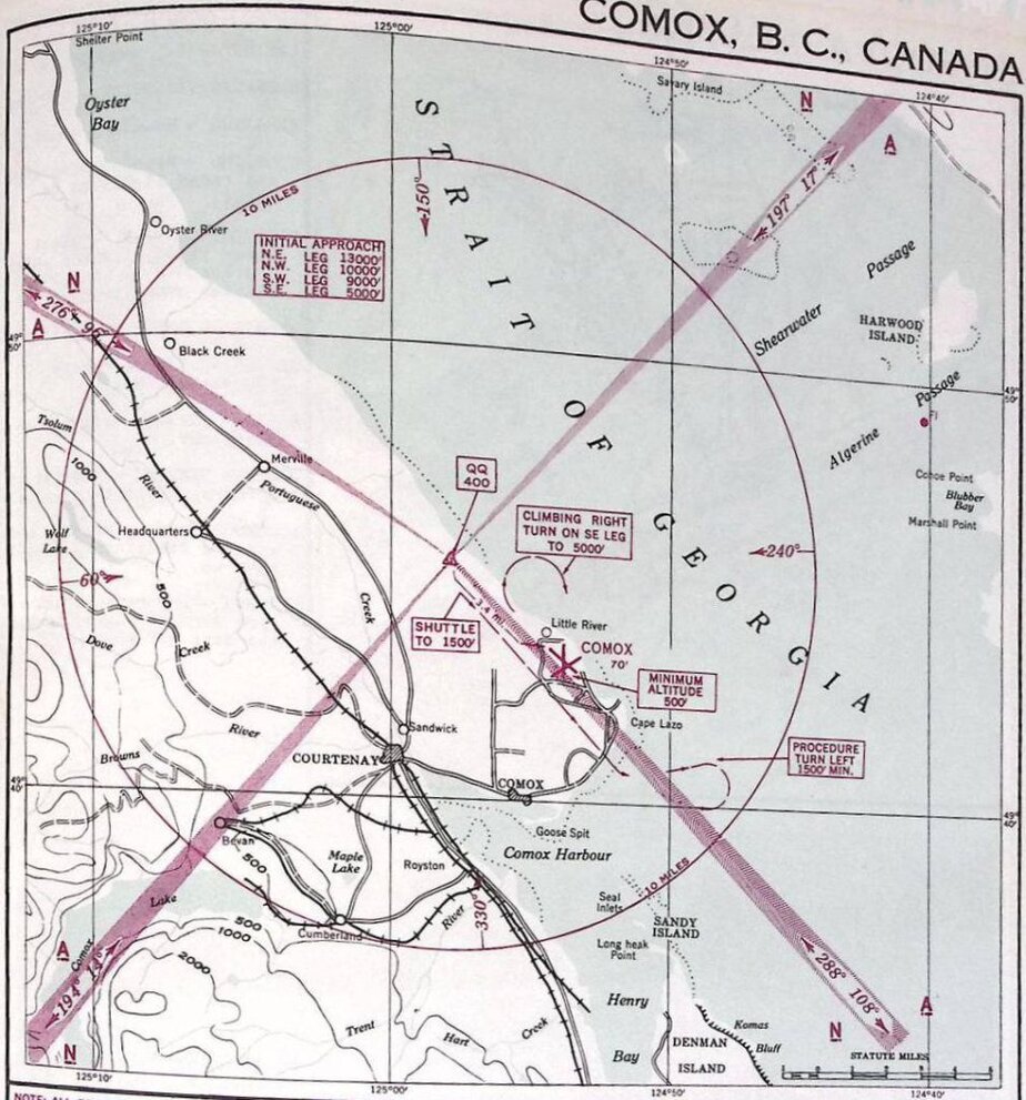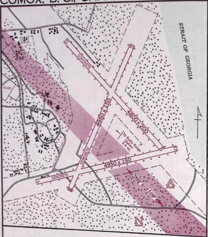 - The Publication On Track…the Pilot’s Air Travel Guide (First Annual Edition – 1978) lists the Aerodrome as “Comox” – See photos on this page.